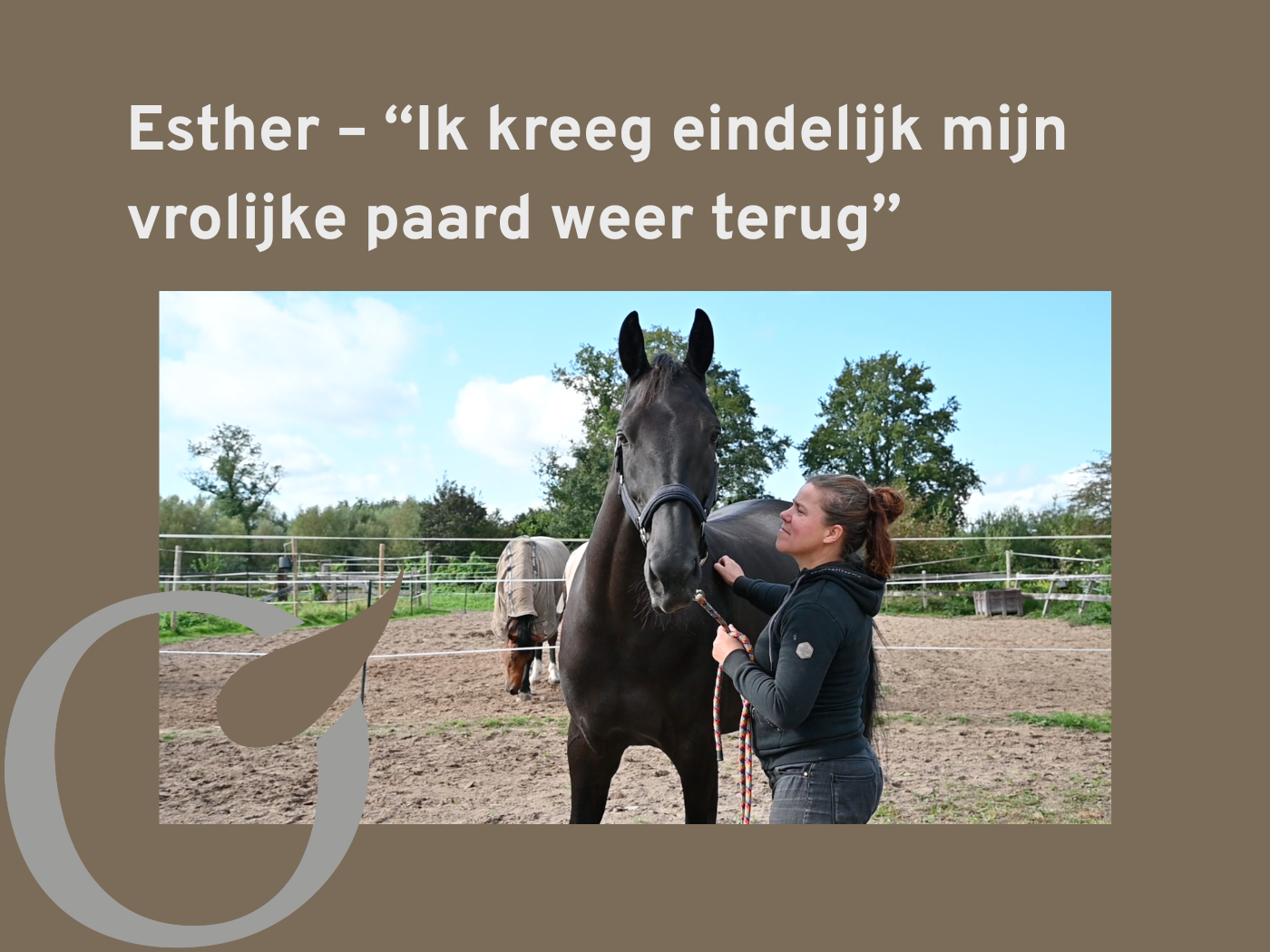 Result: less sensitivity when touched or saddled, smoother and more relaxed movement, visibly a different horse